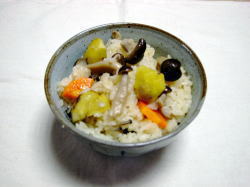 3 米に調味料を加え軽く混ぜてから、全ての具をのせて、普通に炊きます。