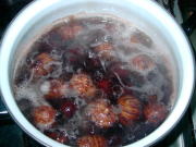 (3回茹でる間に栗の皮を綺麗に取ります。) |