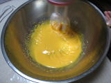 2.大き目のボールに卵黄と砂糖を入れ、泡だて器で、白くふわっと