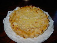 1、パイ生地は麺棒で薄く伸ばしてタルト型に敷き詰め冷蔵します。 |