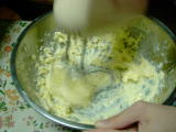 4.卵をほぐして少しずつ加え、むらなく混ぜます。 |