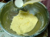 5.次に、サワークリーム、バニラオイルを加え、泡だて器で混ぜます。 |