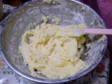 2.大きめのボールにバターを入れ、泡だて器でクリーム状にします。