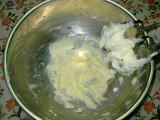 クリーム状にします。砂糖を加えて白っぽくフワッと